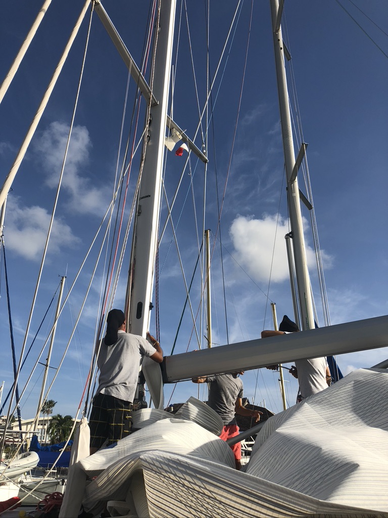 Over the past month, we patiently waited for people to come and help us fix all the little problems that we were unable to fix. We had so many questions about our chart plotter and electronics and finally had them answered! They changed the generator oil and impeller. There was also the deck wash pump valve change. Our mast had 4 out of 6 damaged sheaves and initial galvanic corrosion on the spreader tips. All repaired now. And the list goes on and on and on. One thing is crossed off the list and another added…!