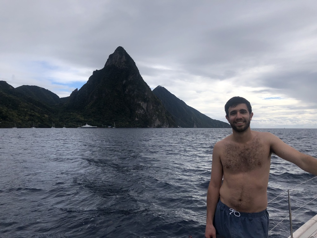 Marco arrived a few days before his college buddy David arrived. We sailed back to the Pitons where we snorkeled and met David in Soufriere. The weather was overcast but we were still awed by the beauty of the Petit Piton and the Gros Piton. After sailing back to Rodney Bay, David and Marco were able to get in a scuba dive and a round of golf before going back to work. All very short…but sweet!