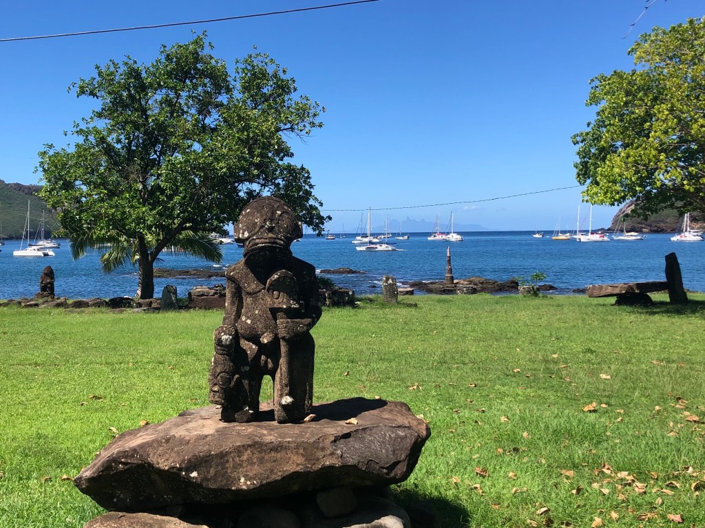 The National quarantine and isolation for Covid-19 had been extended to the 29th of April. Fortunately, we were granted permission by the French Polynesian authorities to stay in this lovely, safe bay. Nuku Hiva is a very small community (less than 500 people) at the foot of beautiful green hills with a huge natural harbor, called Taiohae Bay, which has been defined the best anchorage in the Marquesas Islands.