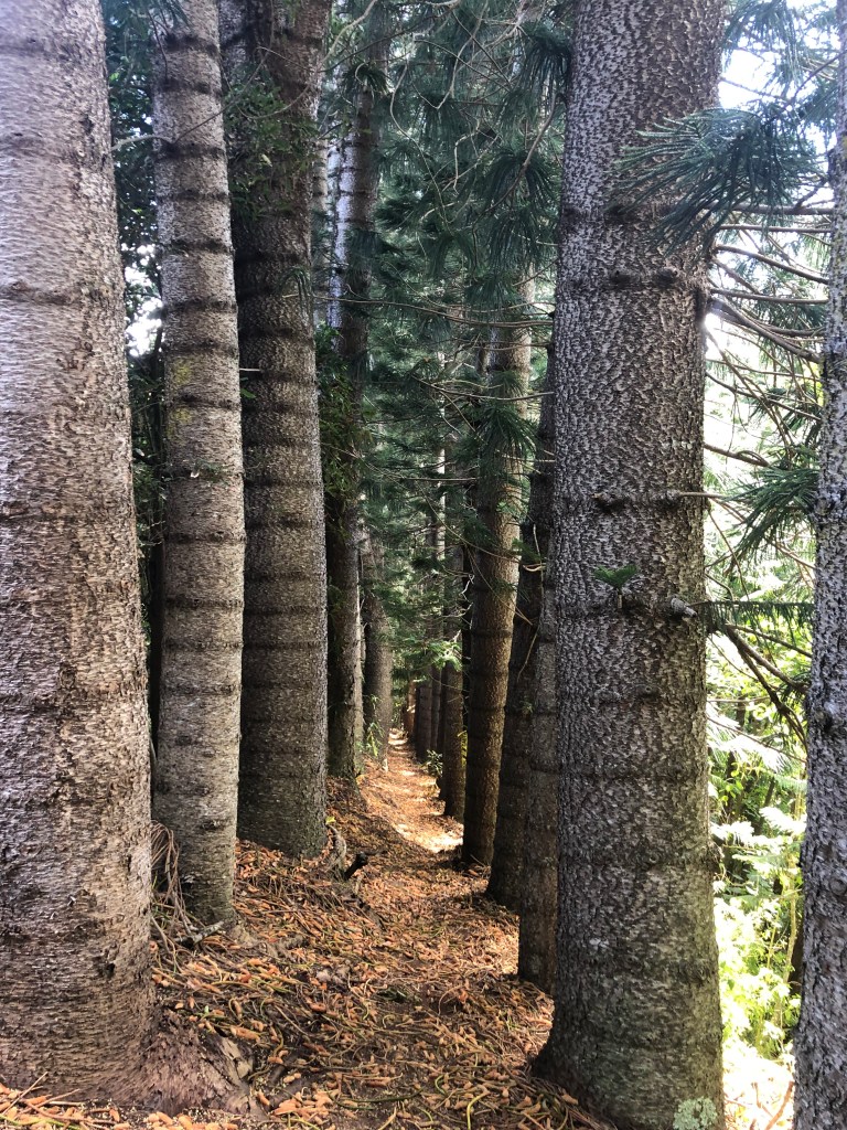 One afternoon, Betsy took us to the Ulaka’a Trail in a beautiful forest in the hills outside Honolulu. The forest had many huge, wonderful trees and the vegetation was lush and rich: lots of ferns, moss and lichens.
