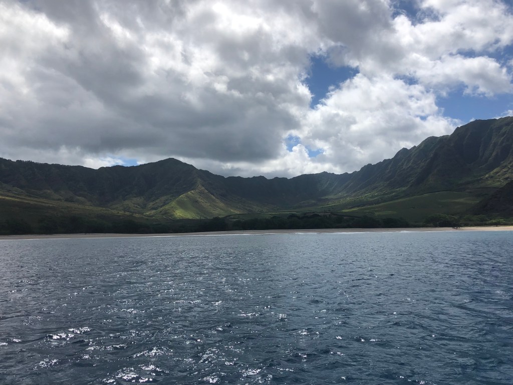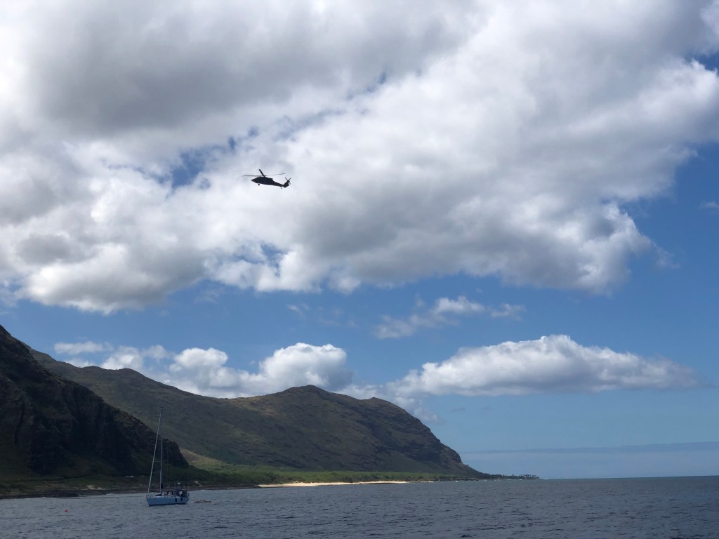 We spent a few night anchored in a bay off Mākua Beach. During World War II, the area was used for bombing practice. We watched and listened to US Army helicopters practice and train onshore and overhead for several hours each day.