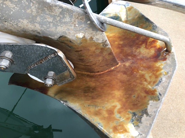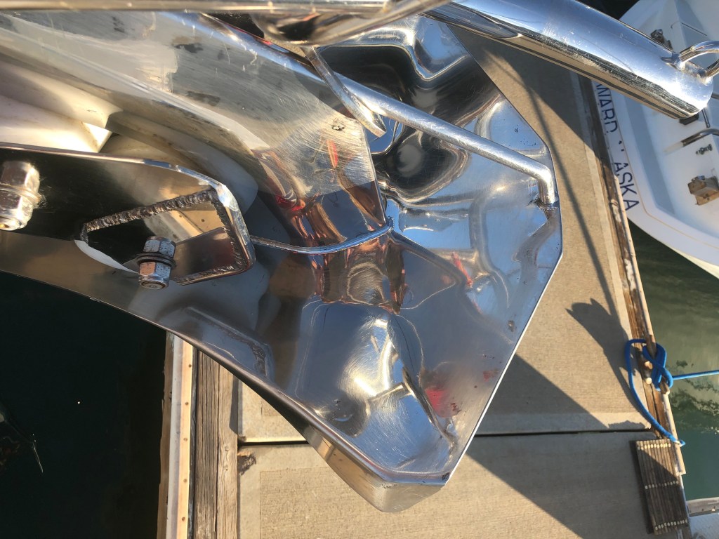 Giorgio also had the job of cleaning the anchor. After 5 weeks in the mud of Taiohae Bay in Nuku Hiva, rust formed on the stainless steel when it was buried in the mud, due to the lack of oxygen. It was a painful restoration project requiring lots of ‘elbow grease’ but he did a great job!