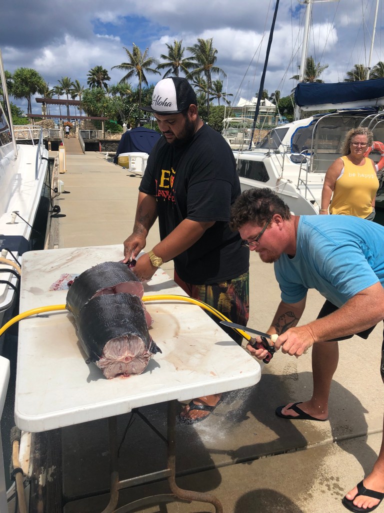 One of our favorite places in Honolulu turned out to be the dock area in Honolulu. There is a restaurant called Nico’s Pier 38 which has a fish market that sells the most beautiful and delicious fresh fish. Poke (pronounced pokey) is a dish of cubes of fresh, raw fish mixed with different sauces. Delicious!