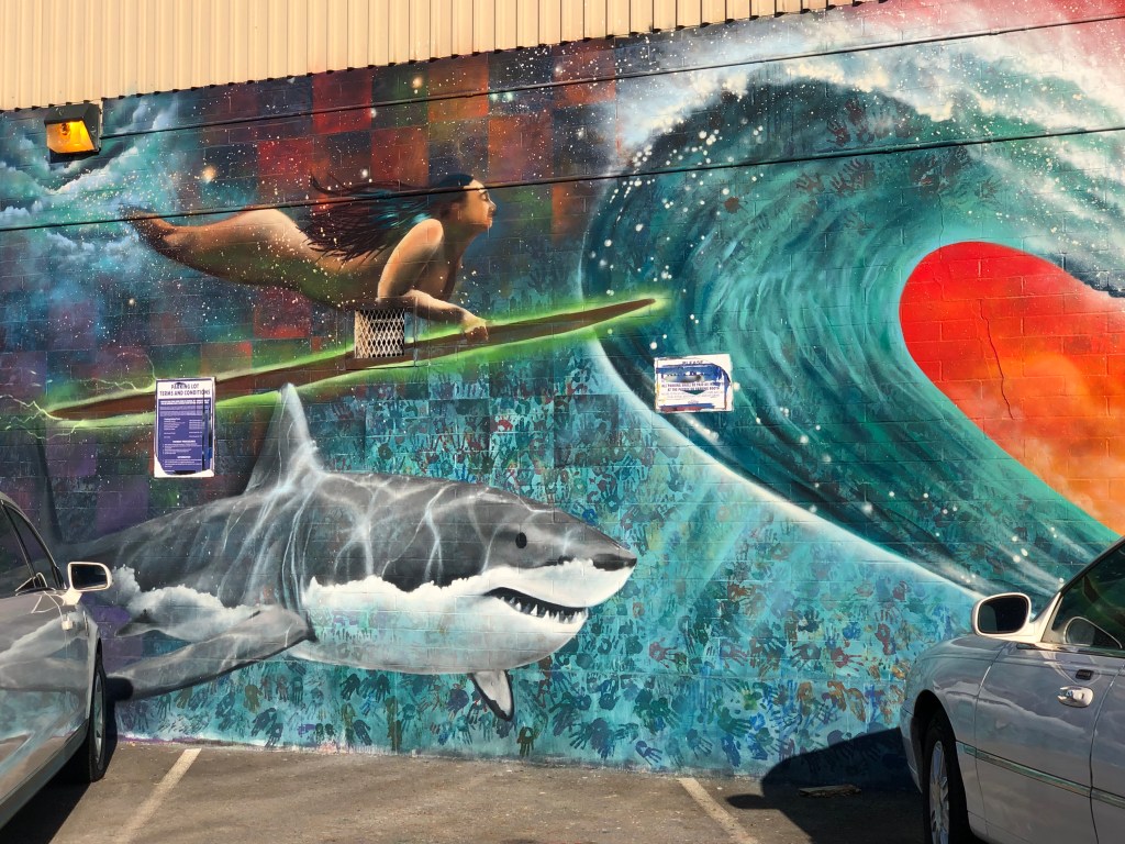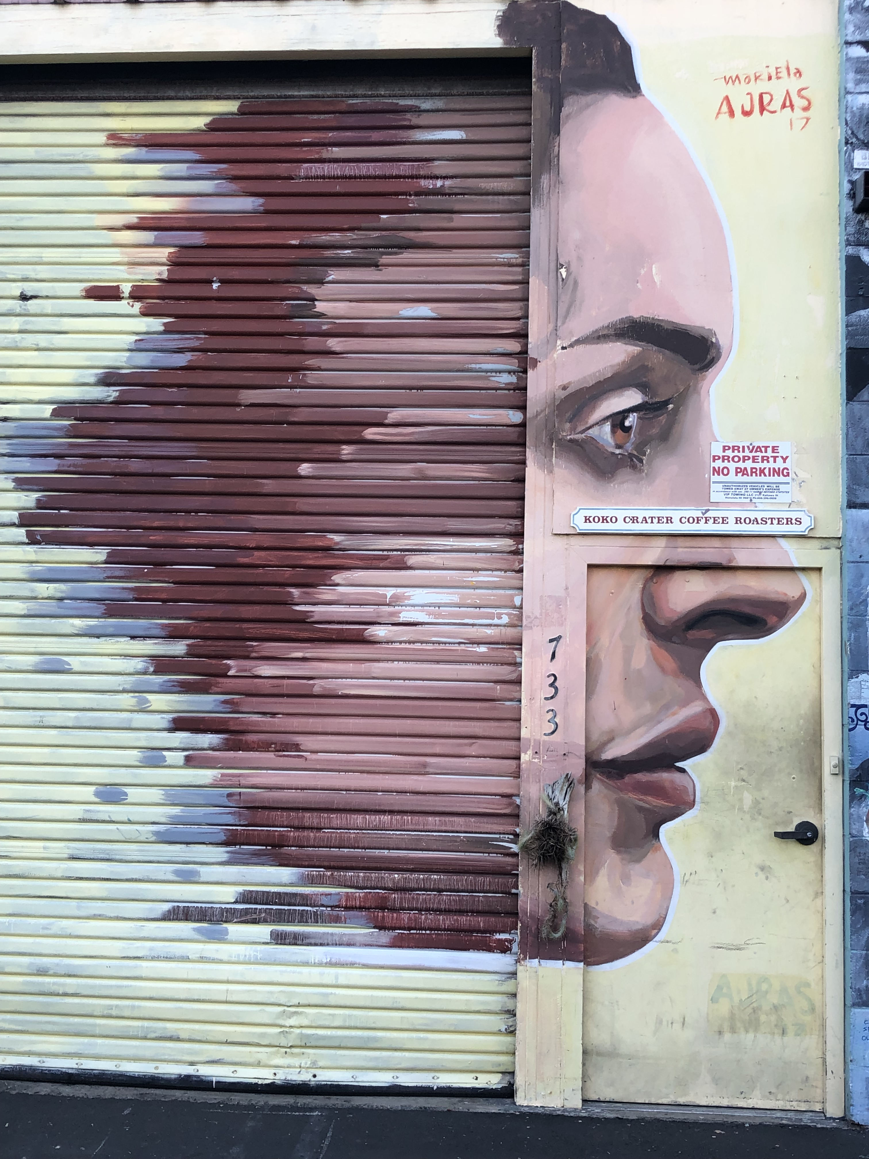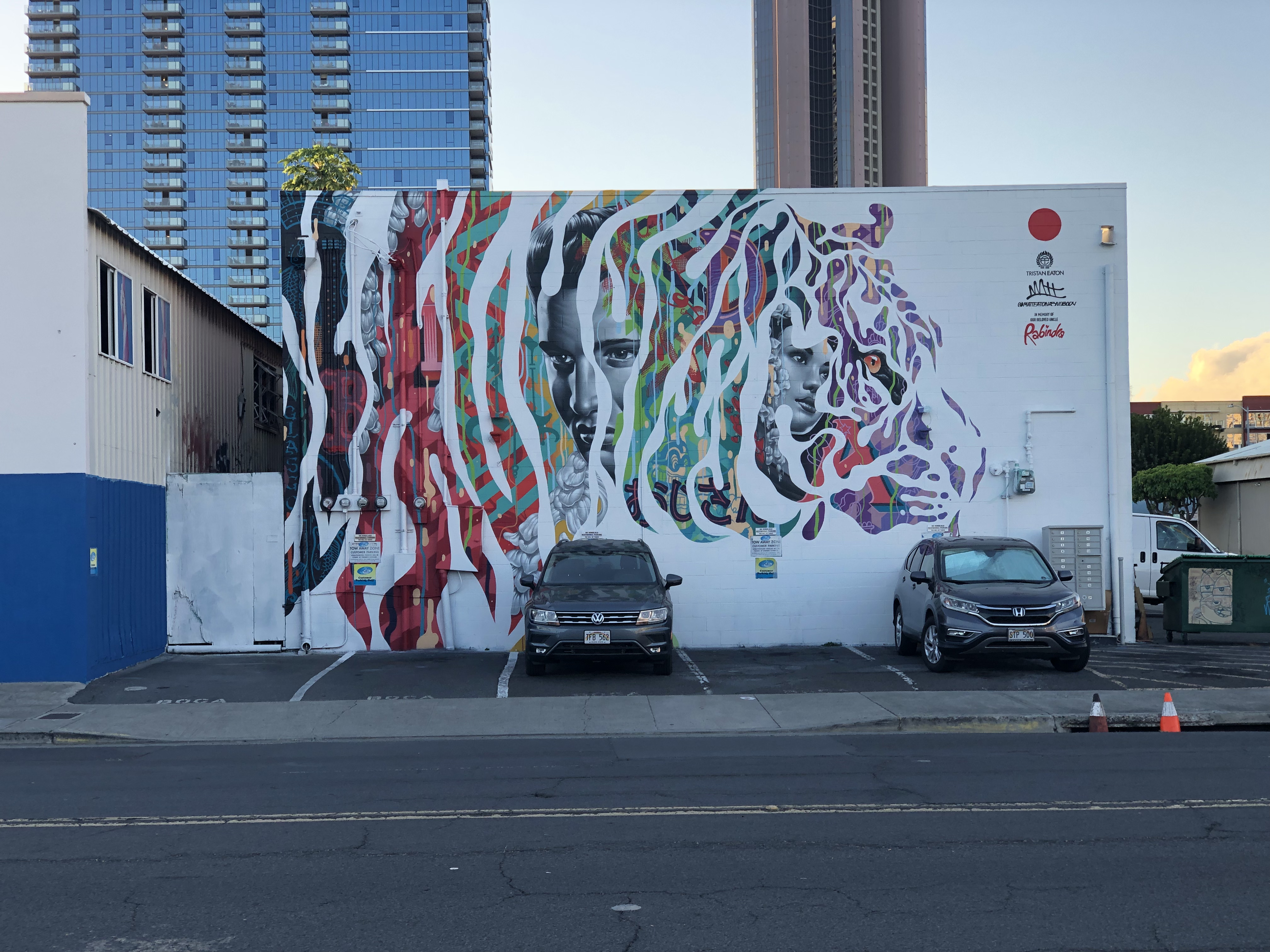 It was great fun to spend time with Betsy. She is always ready for a good hike (she is a long-time member of the Sierra Club) or a walk around the city. The first place we walked was to see the Kakaako murals in Honolulu. Every year local artists compete to win a space to paint on a building. As we walked around looking at the murals, the streets were deserted. The city was so quiet, surely unlike its pre-COVID-19 vibrant rhythm.
