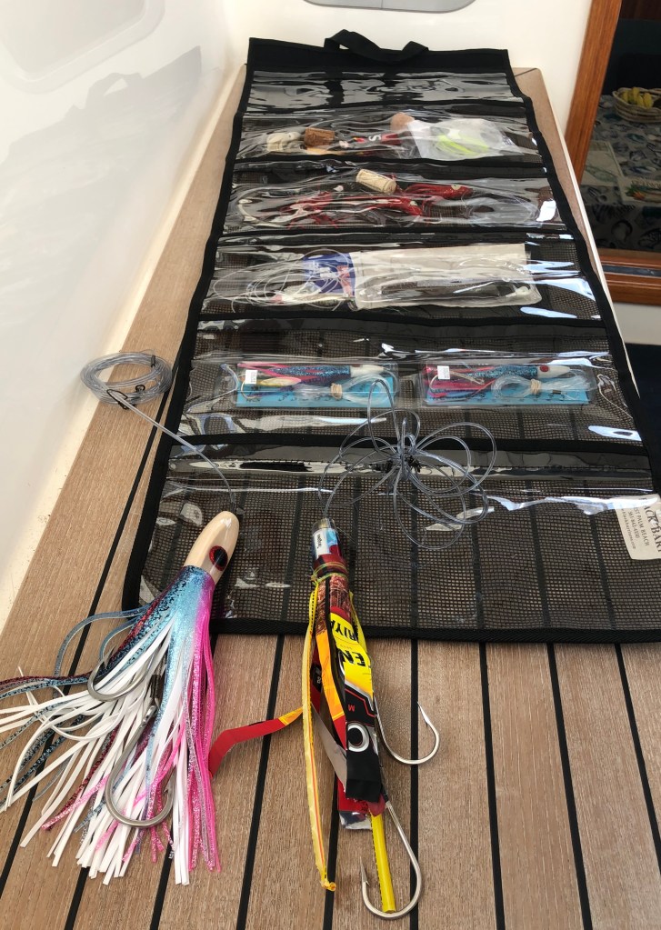 Giorgio has a hard time sitting still which is often a good thing. The boat is giving him time and opportunity to learn many new skills. One of his projects was to get all of his lures in order. He also is becoming quite good at making them, too!