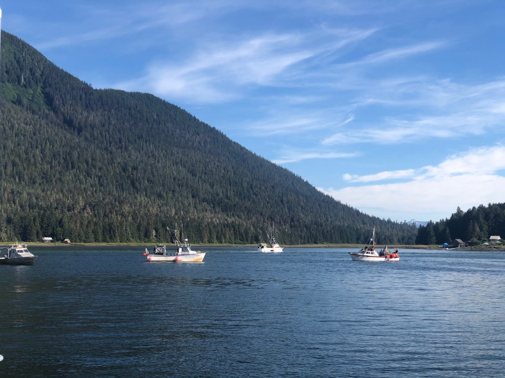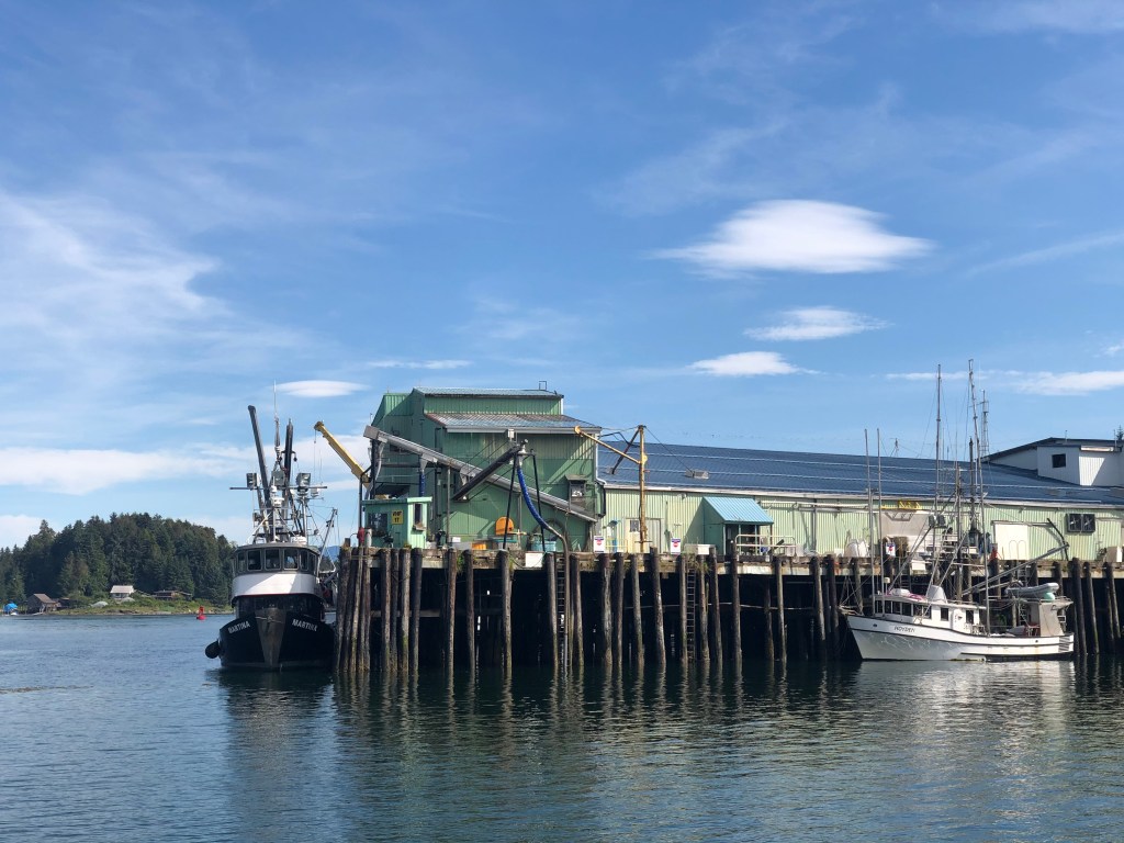 Petersburg is a nice small town known for its Norwegian heritage and for having one of Alaska’s most prosperous fishing fleets. In the early 1900s, local businessmen thought that with the proximity of lots of glacial ice nearby, the town would be an ideal spot for a cannery and today Petersburg is the home of a modern seafood processing corporation known as Icicle Seafoods. Fishing is still the mainstay of the economy. Notice the parallel tidal grids for working on the boat: you arrive over them on high tide and work on them at ebb tide.