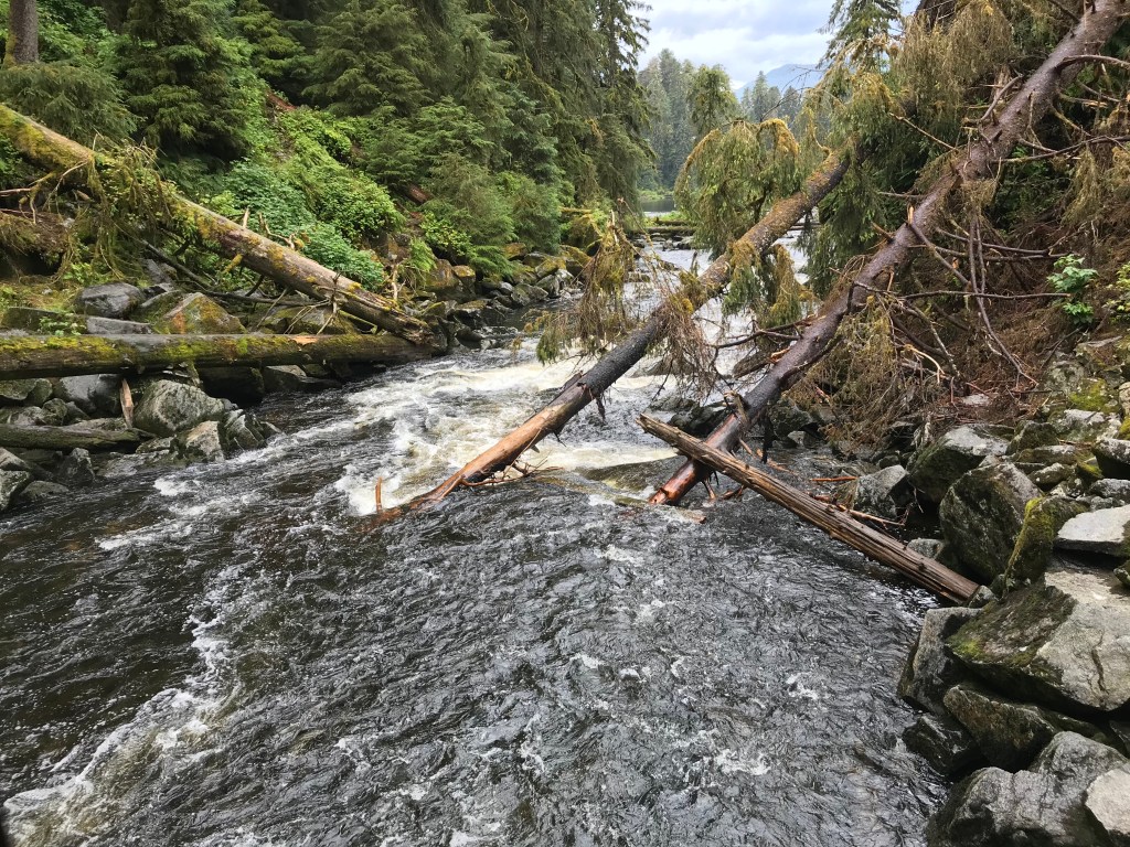 We anchored near the Forest Service dock and took our dinghy to the mouth of the Anan River.