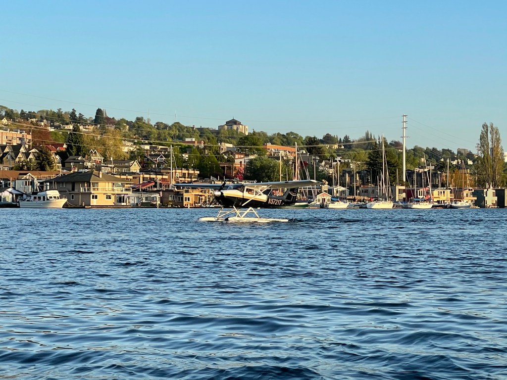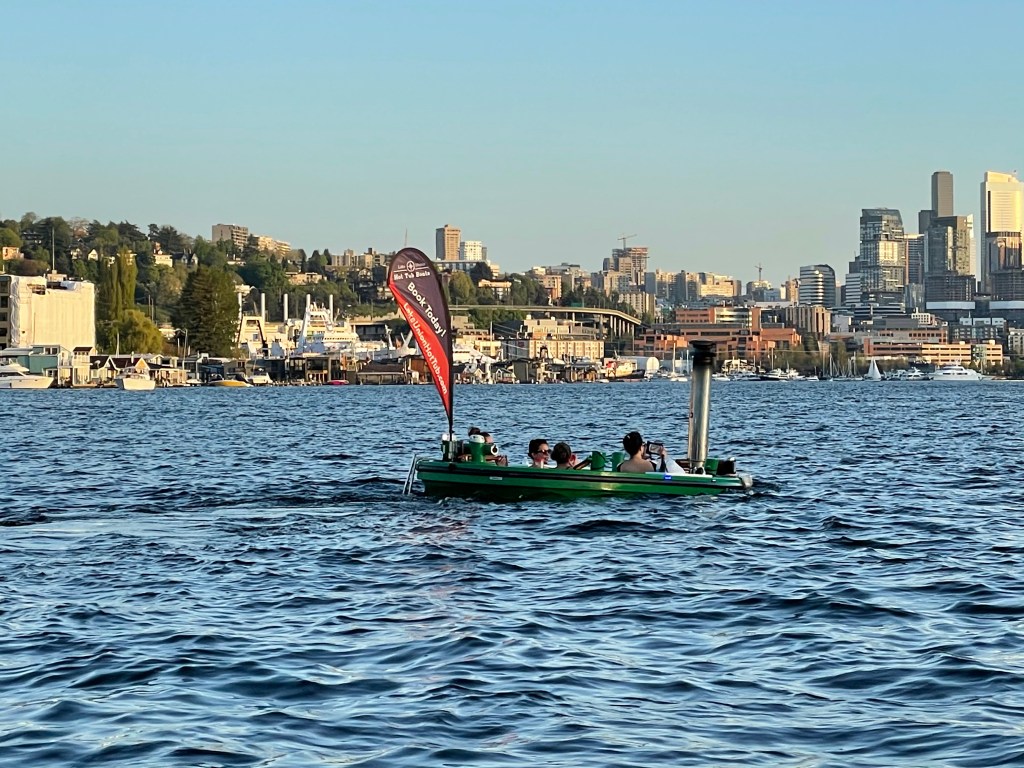 Lake Union has many activities and is filled with life. People rent floating hot-tubs that have warm water inside and an electric engine to propel them. The water is kept warm by a diesel heater and everybody wears a bathing suit. Meanwhile float planes take off and land: what a spectacular view!