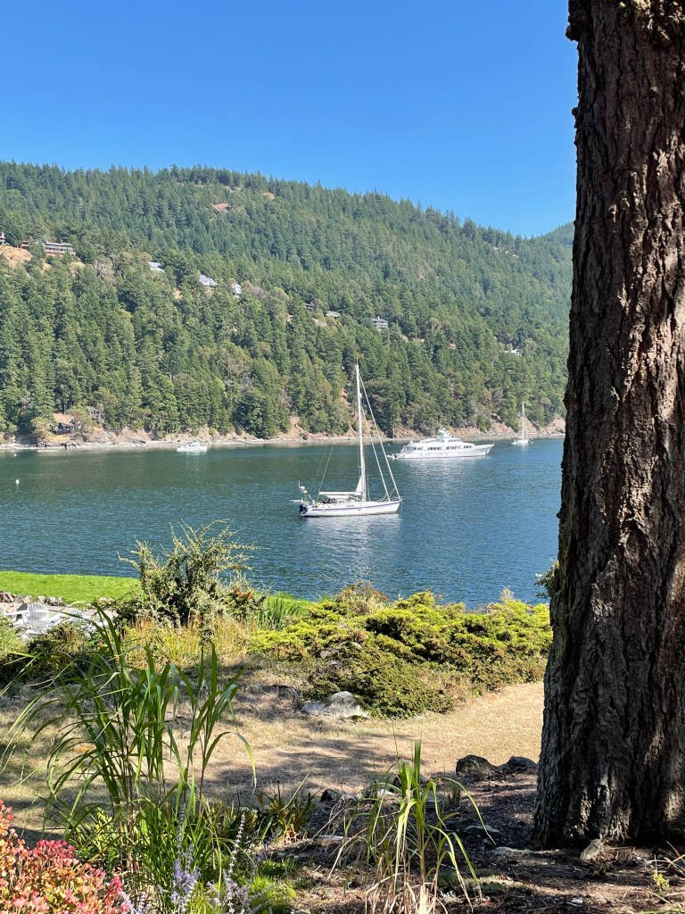 We hiked to the Turn Point Lighthouse on Stuart Island and then sailed on to Roche Harbor on San Juan Island. Turn Point Lighthouse, near the US-Canada boundary, has a dramatic views of converging sea currents, ships making the turn north or south, and occasional whales and dolphins passing by. This is another of our favorite places!