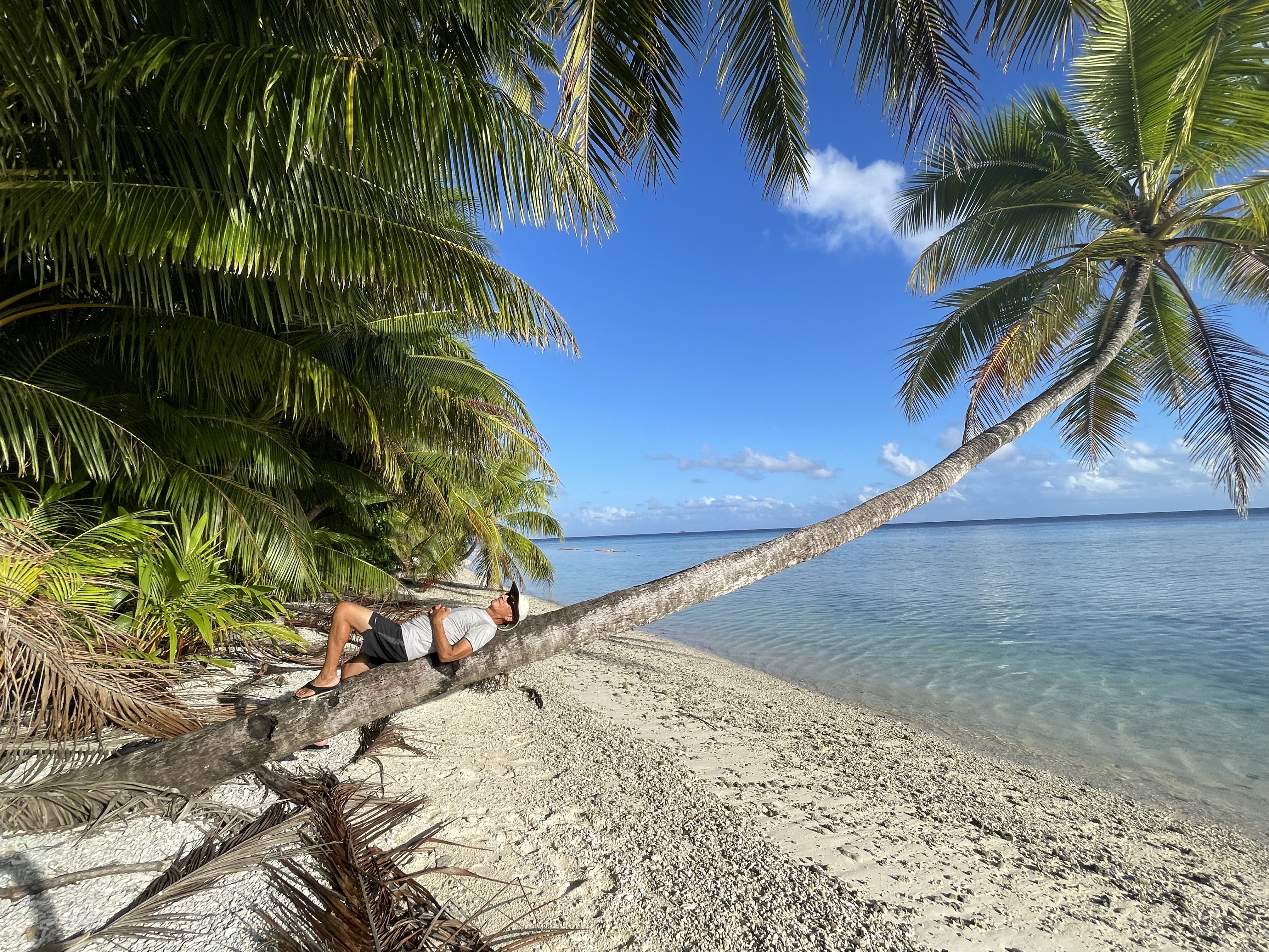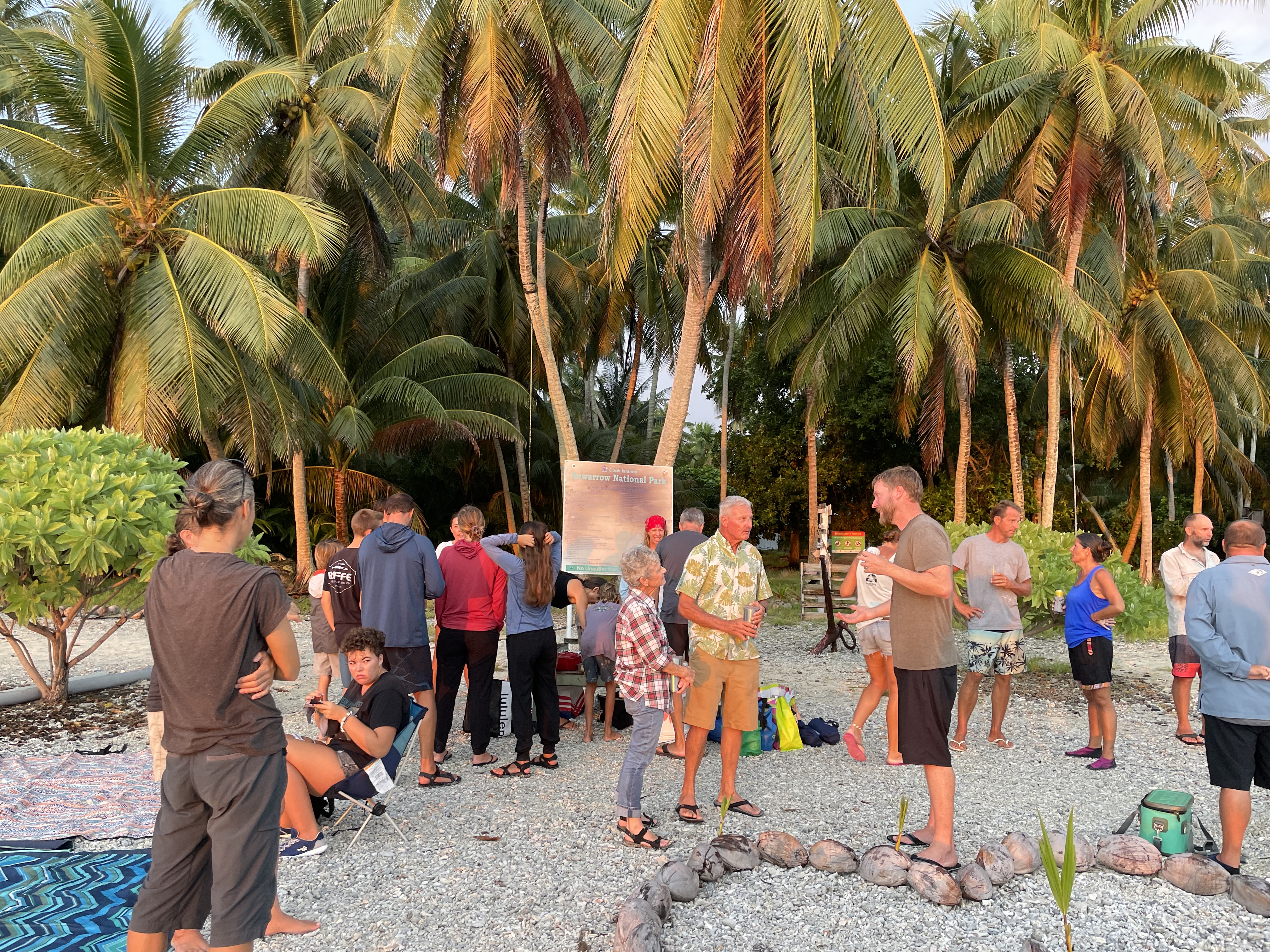Suwarrow is a paradise for sailors, marine life, and birds. It is the most important seabird breeding ground in the Cook Islands. The outer reef encloses a large landlocked lagoon, making a nice anchorage near the motu Anchorage Island. The island caretakers are also Immigration officers and live there from April to October, monitoring the wildlife and visitors. They were very generous during our stay, offering us a chunk of freshly fished tuna and cooking a pot of Coconut crabs for all of us one evening.