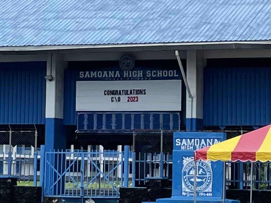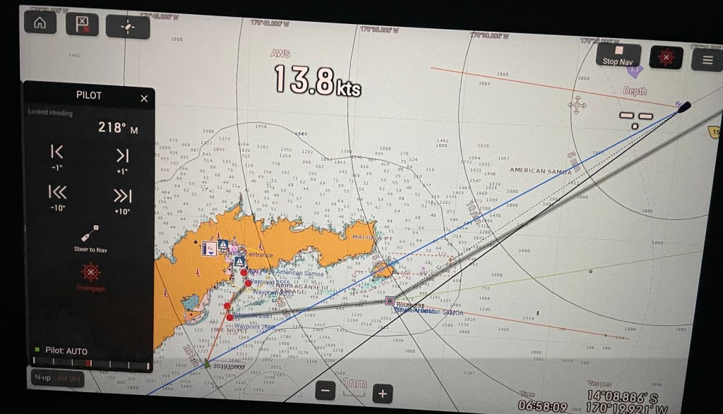 We had not intended to go to American Samoa, but a vast windless area was south of us, so we continued west from Suwarrow. After another 450 nm and 3 days, we arrived in American Samoa, which has been a US territory since 1900. The harbor of Pago Pago (pronounced pango pango) is said to be one of the best harbors in the South Pacific because it is large, deep, and well-protected. Unfortunately, there aren’t any boatyard facilities where we could have left the boat safely to attend Marco and Bekah’s wedding.