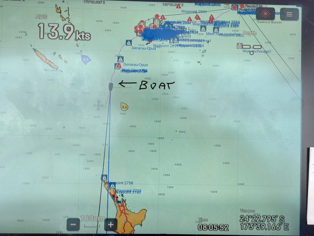 It is essential to optimize the speed of the boat to avoid the next low-pressure system arriving north of New Zealand. If necessary, you can always slow down.