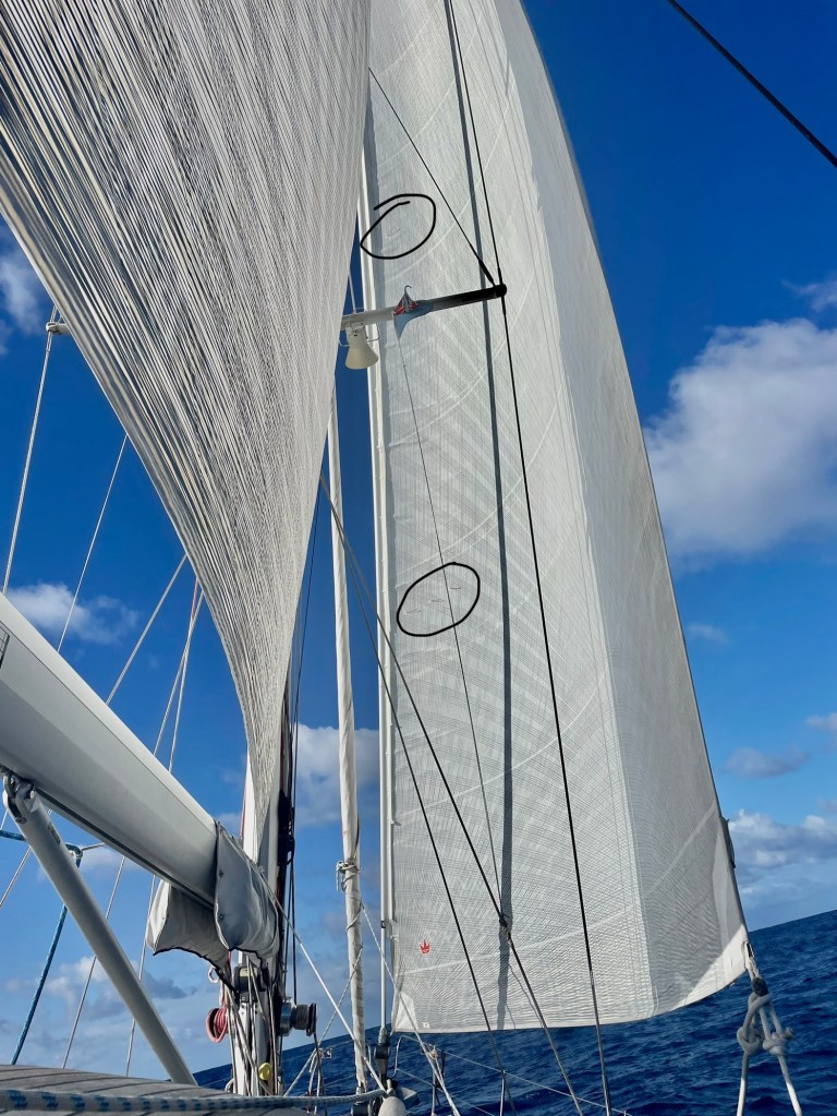 Unfortunately, we could not avoid the “horse latitudes” and had to motor for about 30 hours to keep a satisfactory speed. Then, finally, the westerlies filled in and we were able to go faster without using the engine.