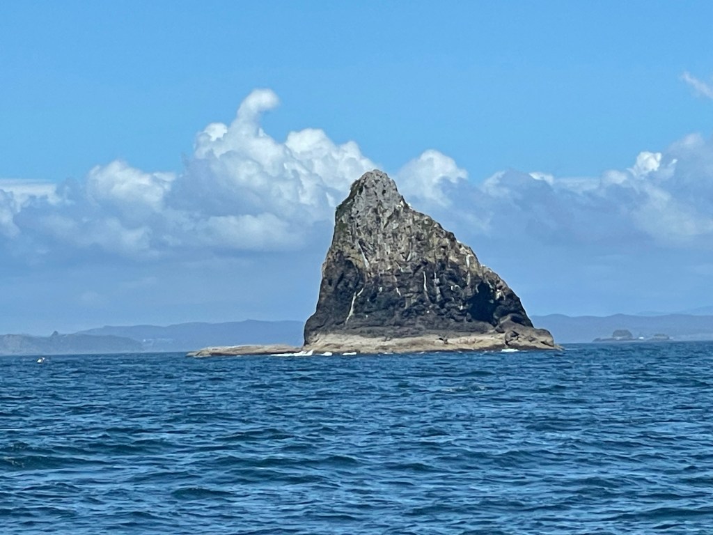 During her shift in the cockpit, Jan noticed that several miles south of us there was a small island-a 2 meter tall rock- located 21*44.41S and 174*38.38E. This rock, called Neva-I-Ra, is not visible at low definition on the electronic map of the chart-plotter, and becomes visible only at high definition: zoomed-in. All around the depth is 1,500-2,000 meters. It is basically the very top of a ~2,000 meter tall mountain.