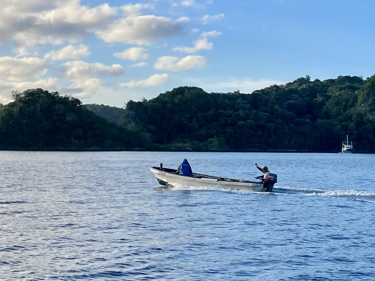 A local fishing boat: gifts of Kava for the chief and a warm shirt for a little girl.