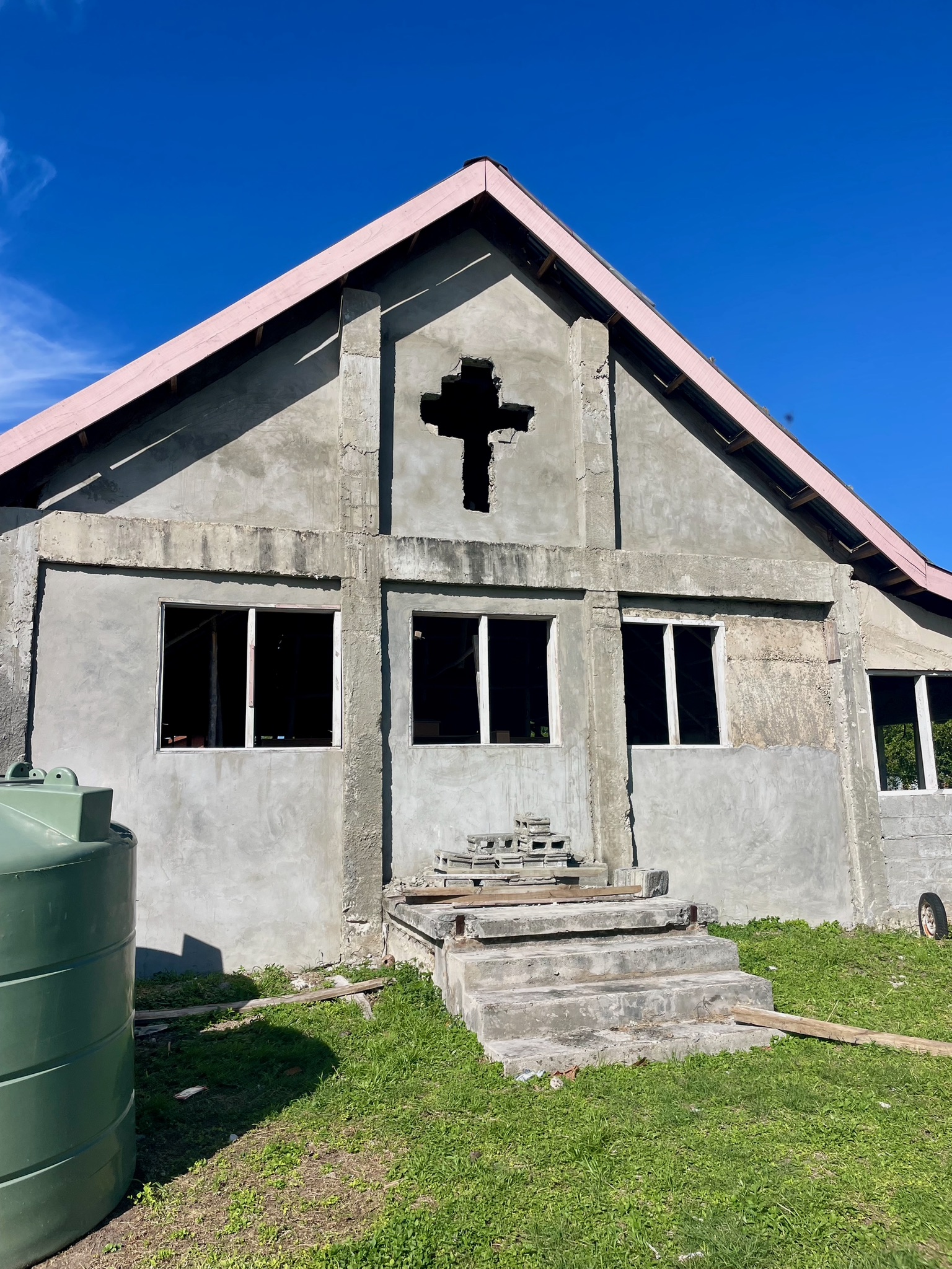 Rebuilding the village church is progressing slowly.