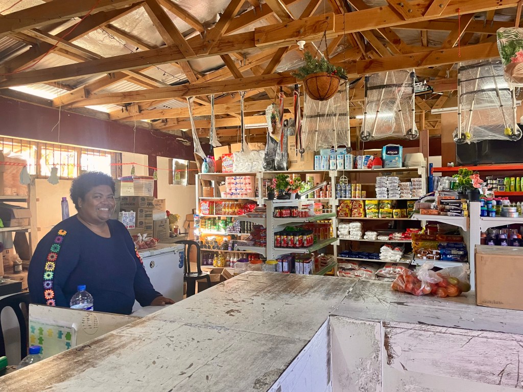 A friendly shopkeeper and store where we bought some staples.