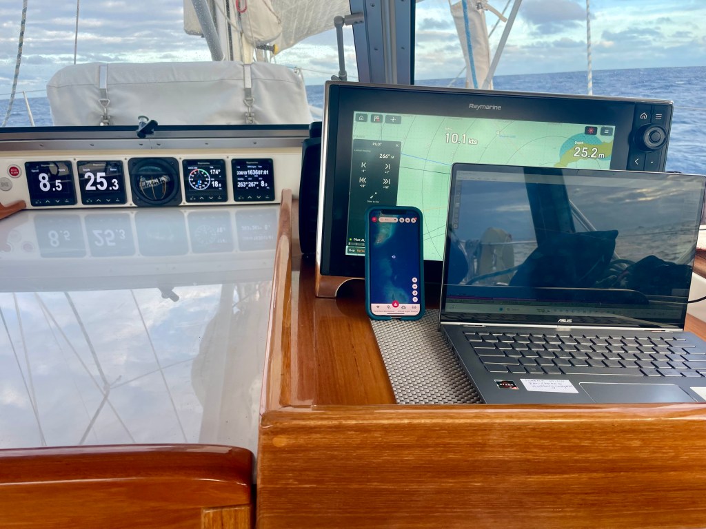 Before our Starlink was installed, we relied on Navionics charts, and Open CPN (with downloaded satellite maps) on a Windows computer with an external GPS receiver. In Fiji, Navionics charts, especially outside major ports and shipping channels, are considered unreliable because they are often based on outdated survey data; consequently, we always use a combination of the Navionics and satellite images. Using only Navionics charts in Fiji could put you on a reef!