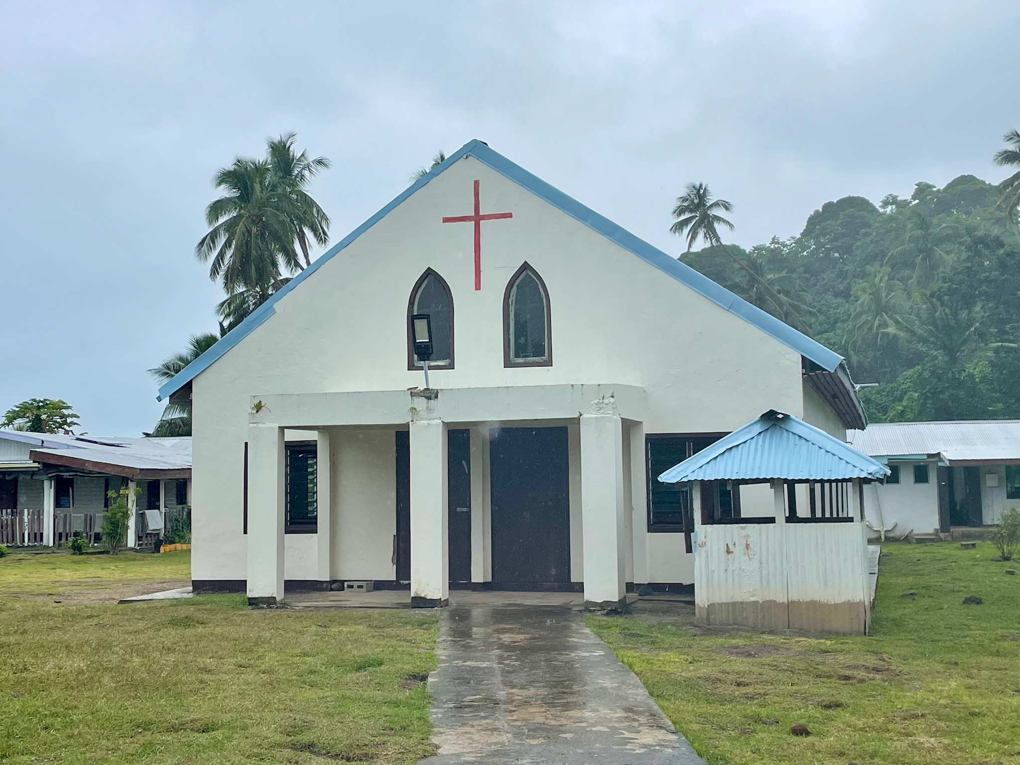 We walked along a hillside trail for 30 minutes to reach Waiqori. We were accompanied by several local village children. Waiqori has one church, and another one is in construction. Nice homes surround a central field. Every school day, the children from Waiqori walk to (and from) Daikiuloa to the Oneata Primary School. One friendly villager invited us to sit and chat.