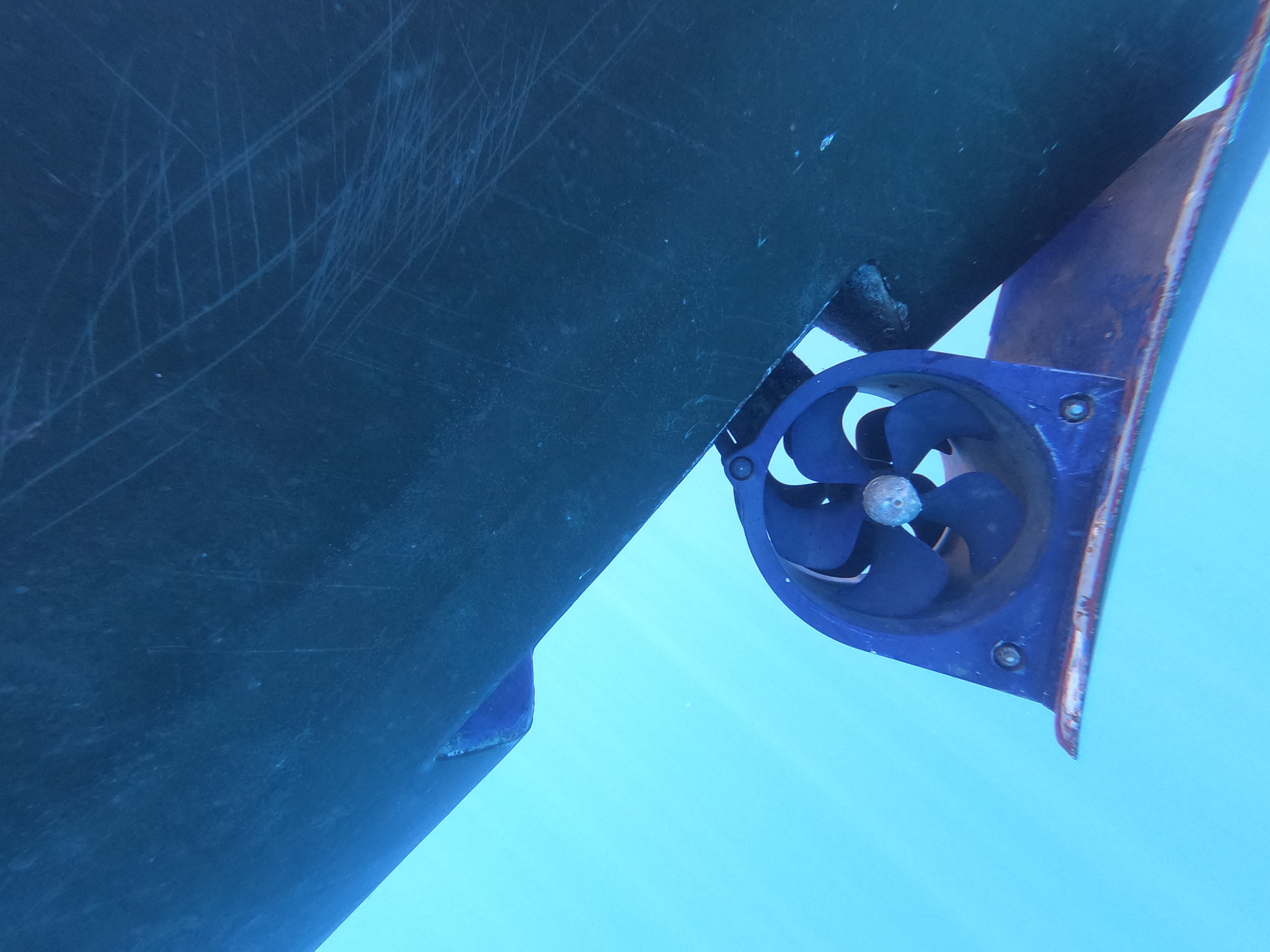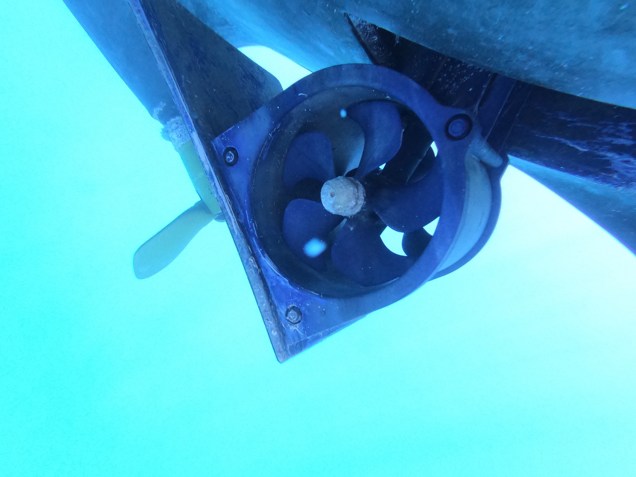 Below: folding propeller, rudder, stern and bow retractable thrusters.