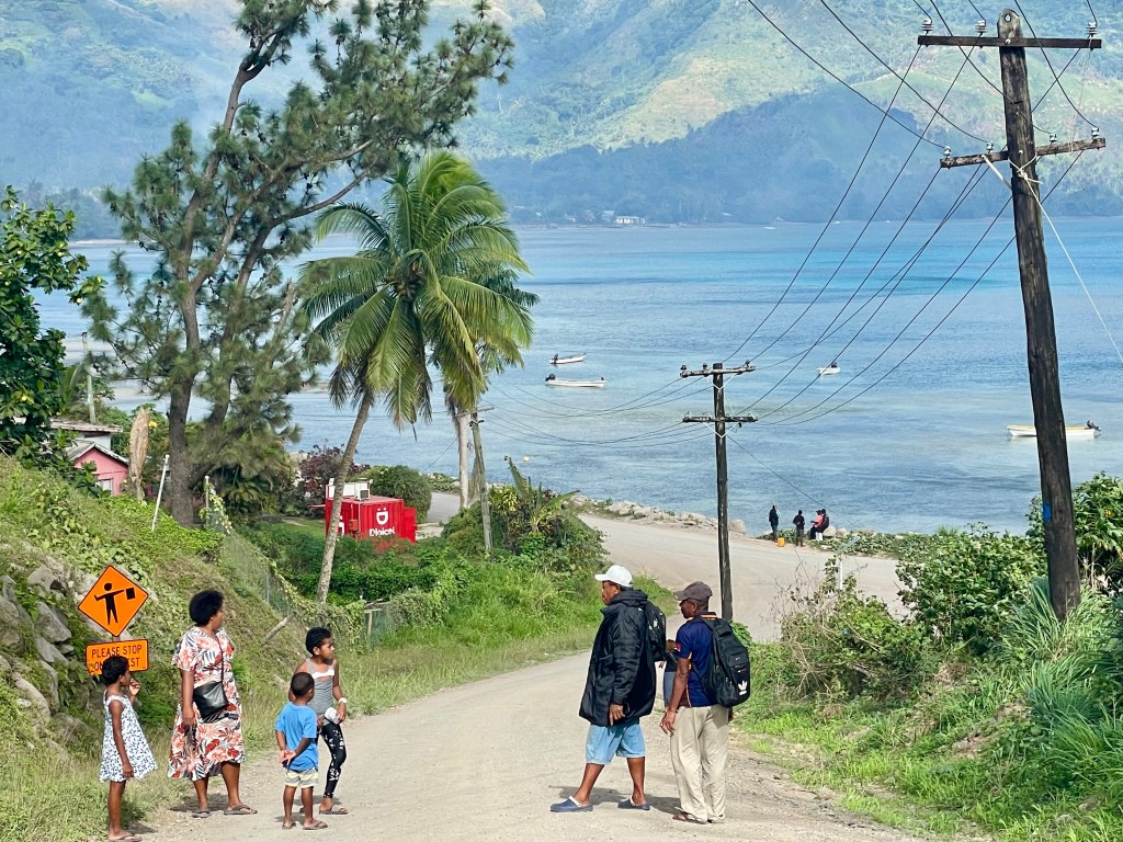 We entered the reef on the east side of Kadavu, and the next day, after crossing the lagoon, we sailed down the west coast to Vunisea, which is the main town on the island. We anchored in the bay in front of the airport and main road. It was an easy dinghy ride to the town, which has a market, several small stores, and primary and secondary schools. We walked around the village and visited the police station to show them our cruising permit. We also had a long walk to the airport and the other side of the island.