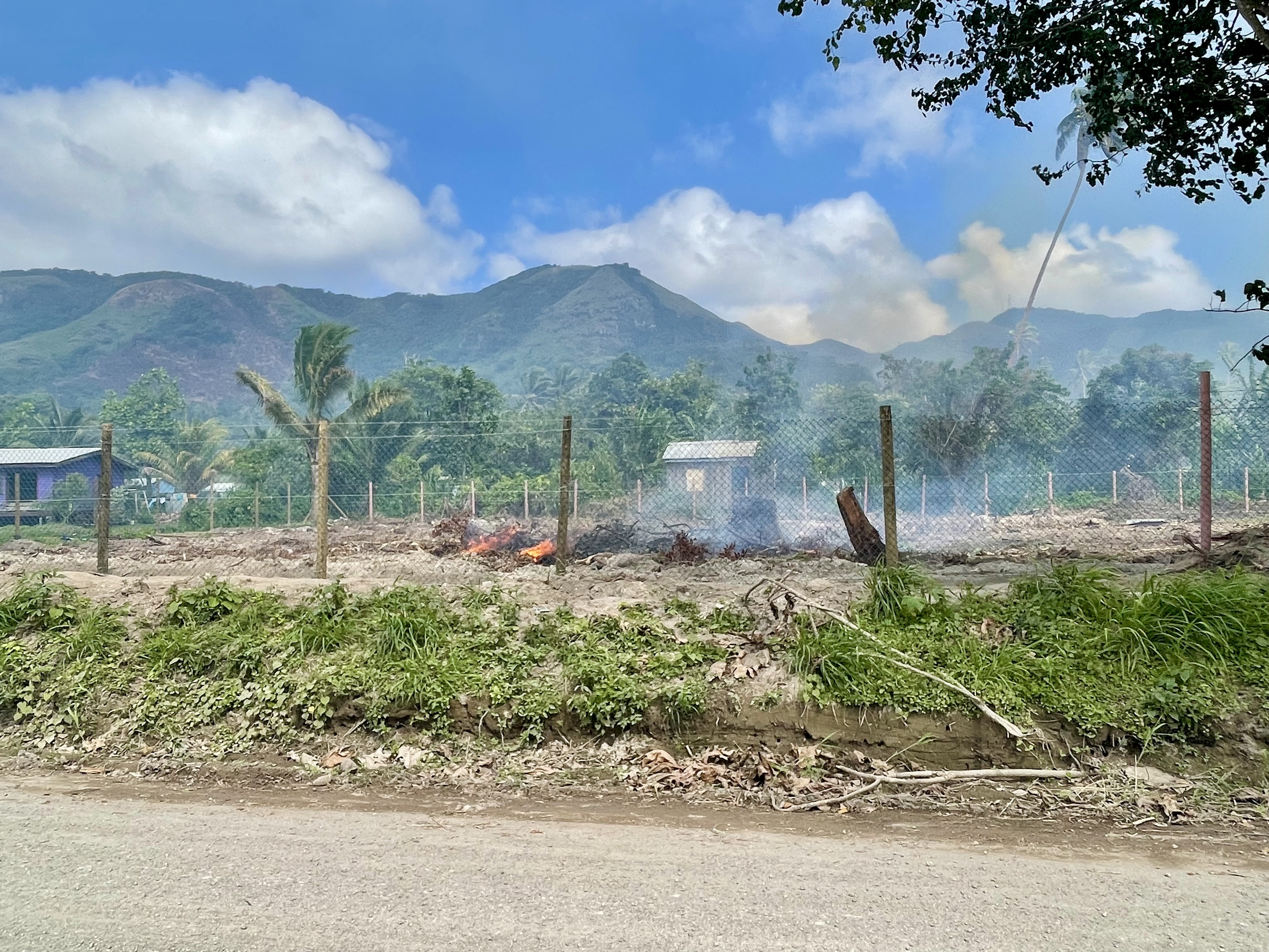 Fires everywhere! Unfortunately, there is no way to properly dispose of garbage on the islands, so the locals burn wherever, whenever, and whatever they can. Fires pop up all day, every day, and spread smoke and debris all around. Not only did Vunisea have several fires going every day, but the dusty roads were unbearable. By the end of our walk around the town, we were covered in dust!