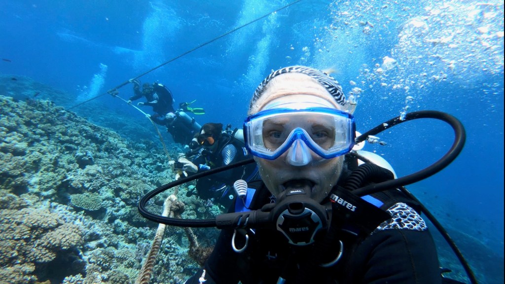 I had been skeptical about taking part in an activity that I suspected was more for tourism than for the benefit of the sharks. After listening to the dive master, I understood that the philosophy of the resort’s dive school was that regularly feeding the sharks protects the fish population and, indirectly, the health of the coral reef. Satisfying the sharks’ appetites with the (otherwise discarded) tuna heads all made sense to me.